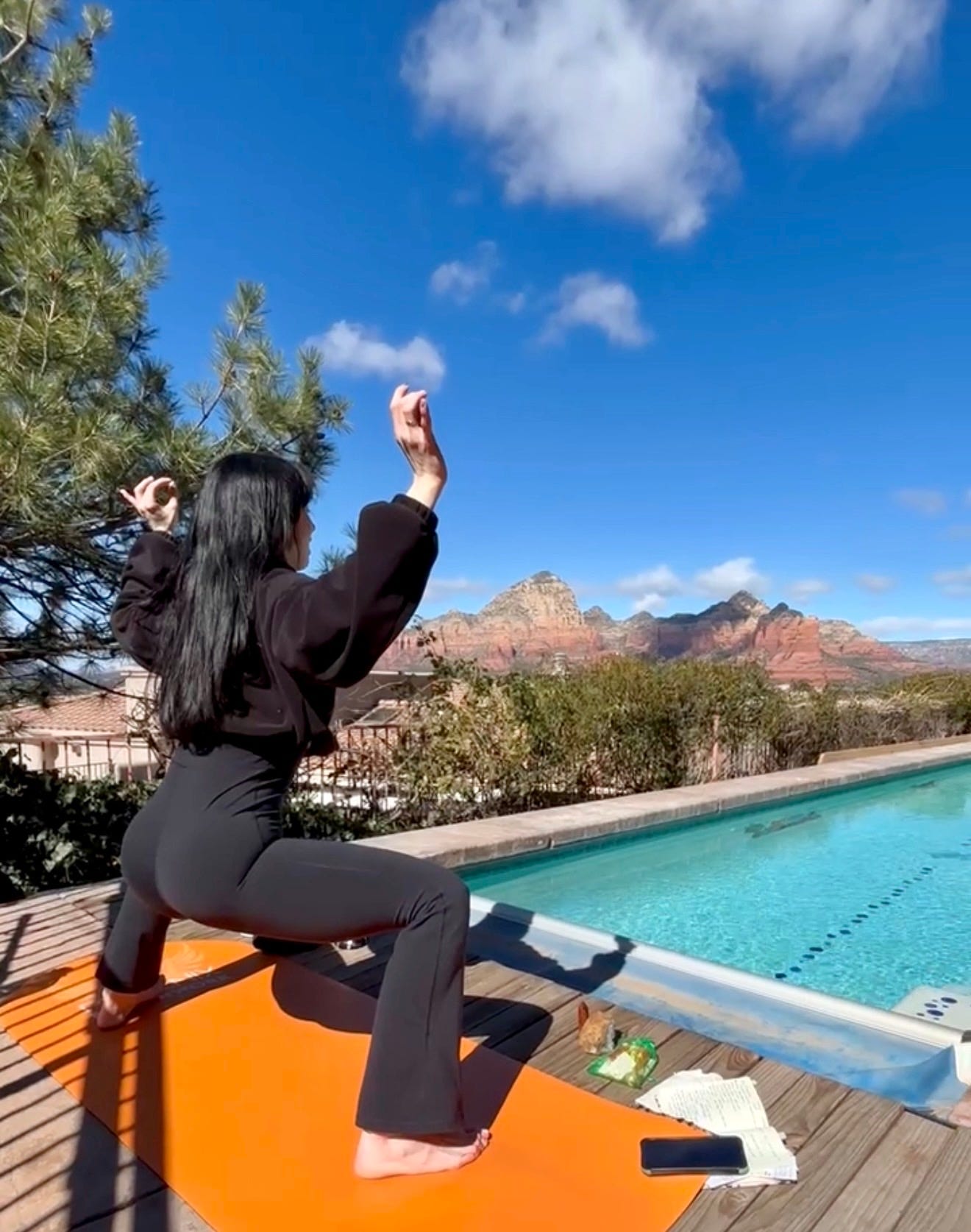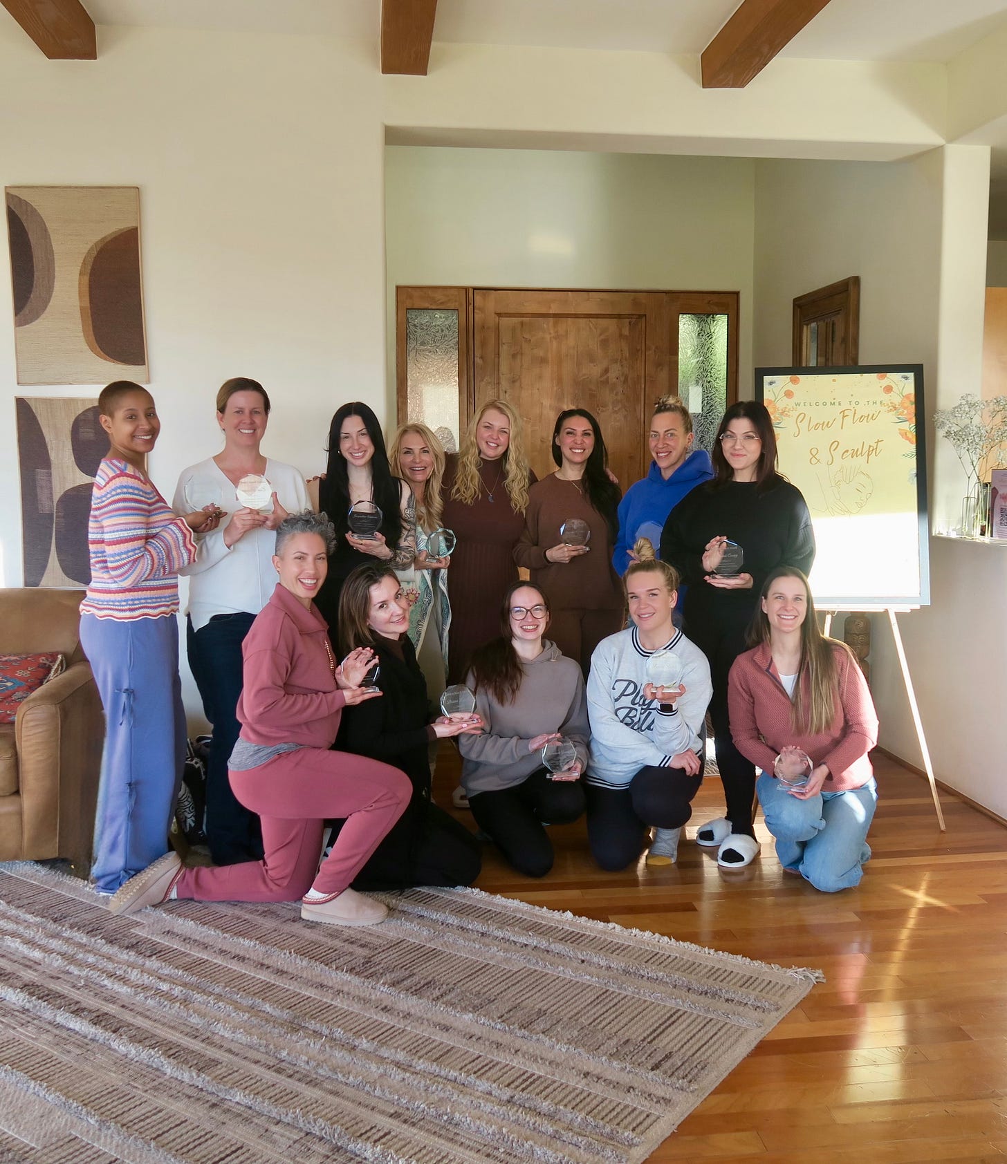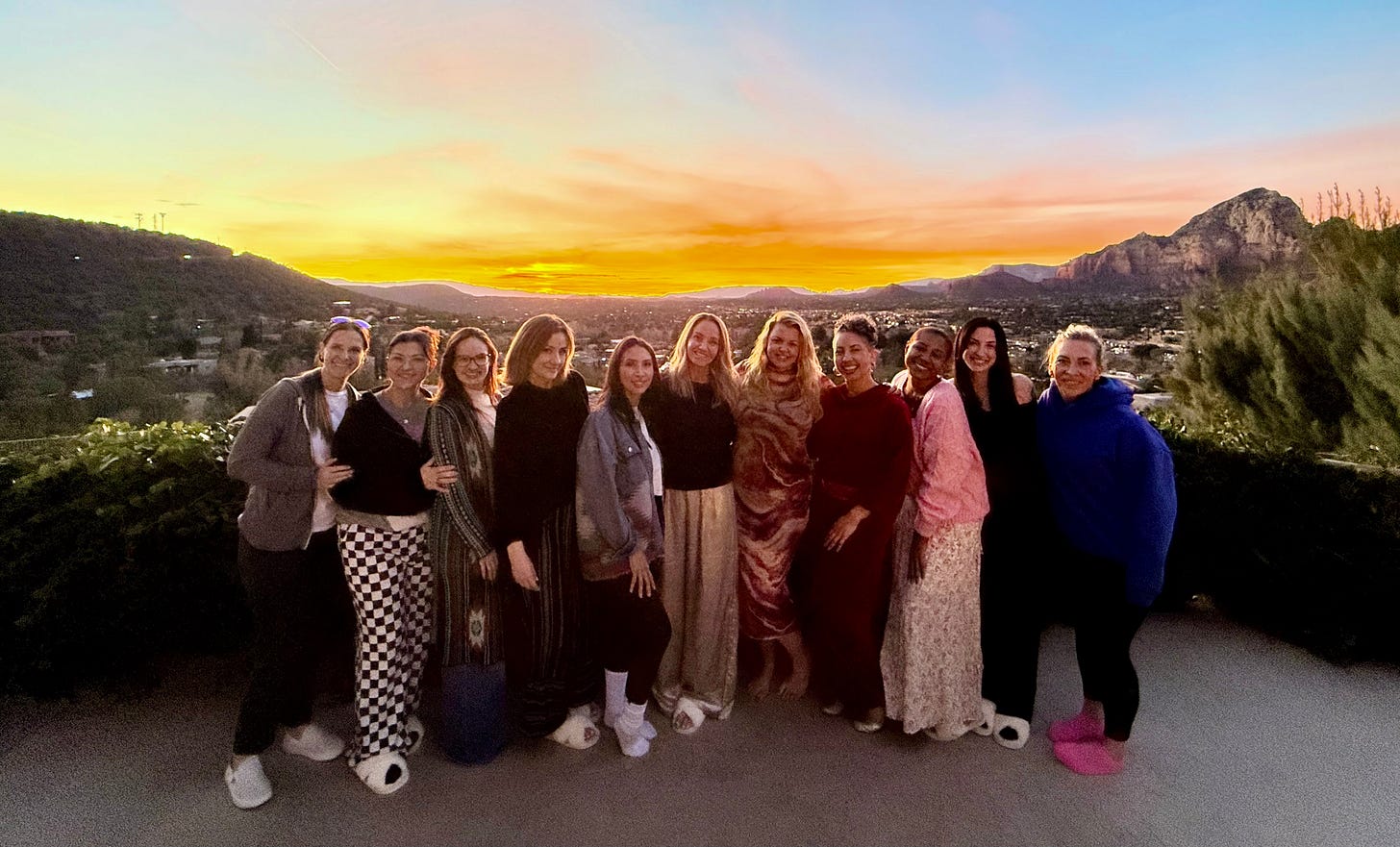 Mid-month, we gathered in Sedona, Arizona for our Sedona Glow Aesthetician’s Retreat — five days of red rocks, reverence, sisterhood, and some of the most honest conversations I’ve witnessed in a long time. The house we leased was cleverly coined the “Haus of Woo”, and this photo below was taken on the upper deck during our last night together.